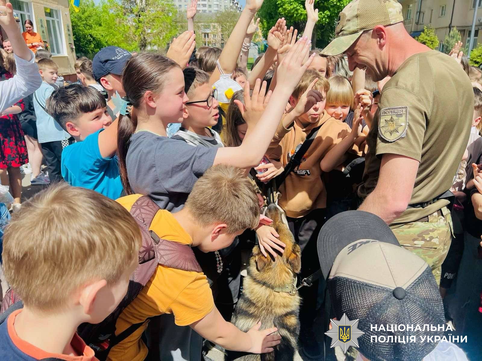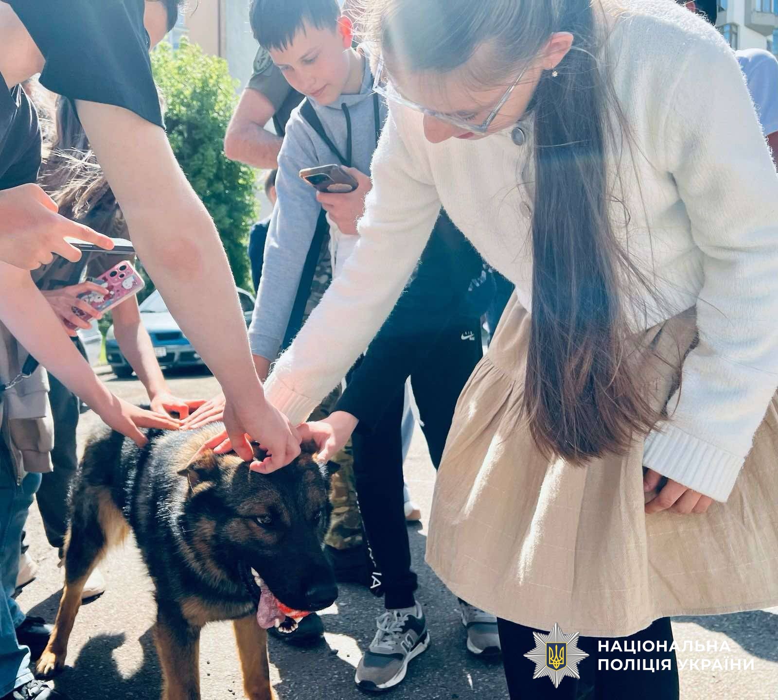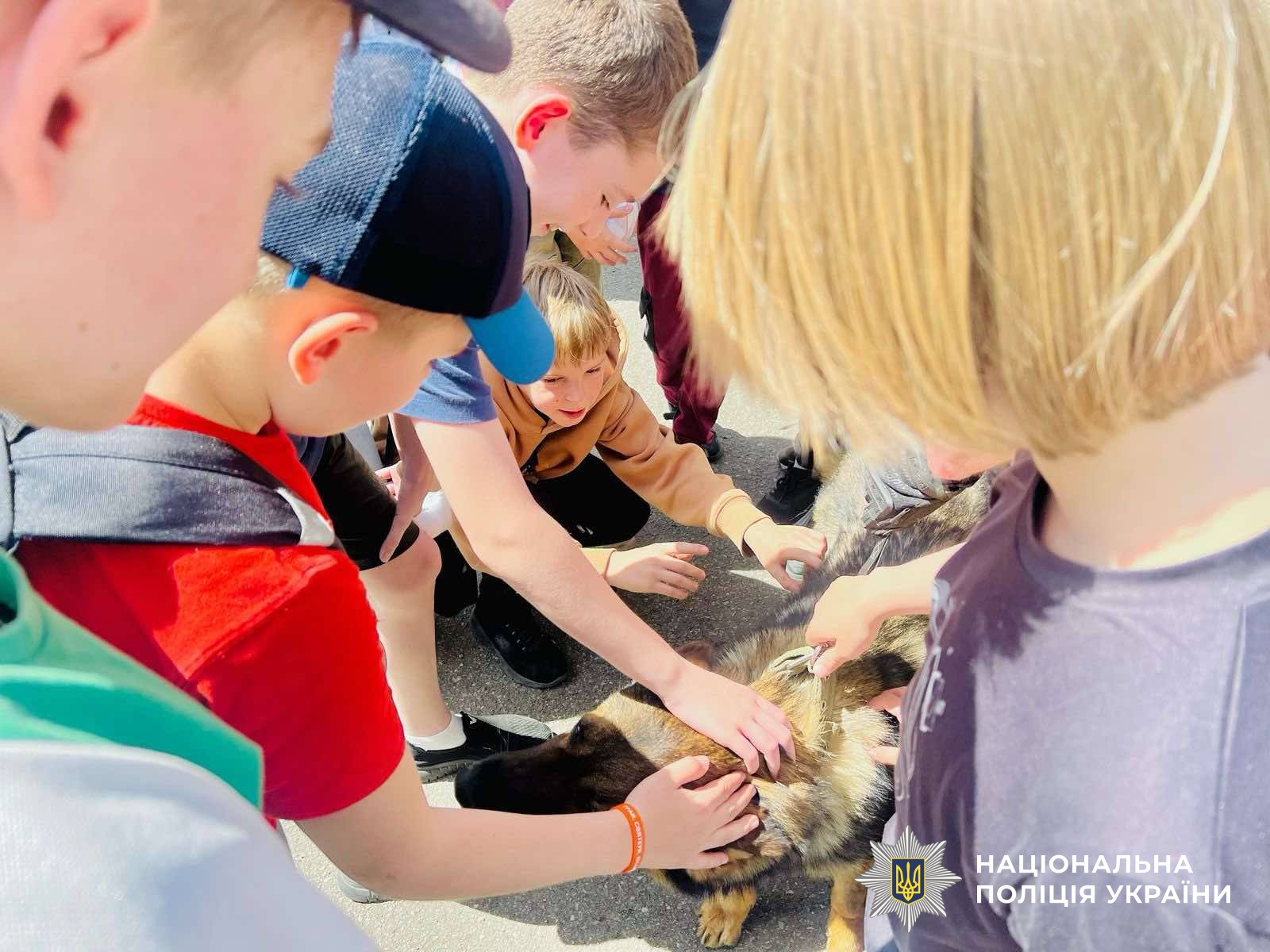 Не менш захоплюючою для дітей стала демонстрація від кінологів. Поліцейські показали, як чотирилапі напарники за допомогою нюху знаходять речі, людей, а також виявляють вибухівку. Дітки мали змогу провести час зі службовими собаками та зробити спільні фото.