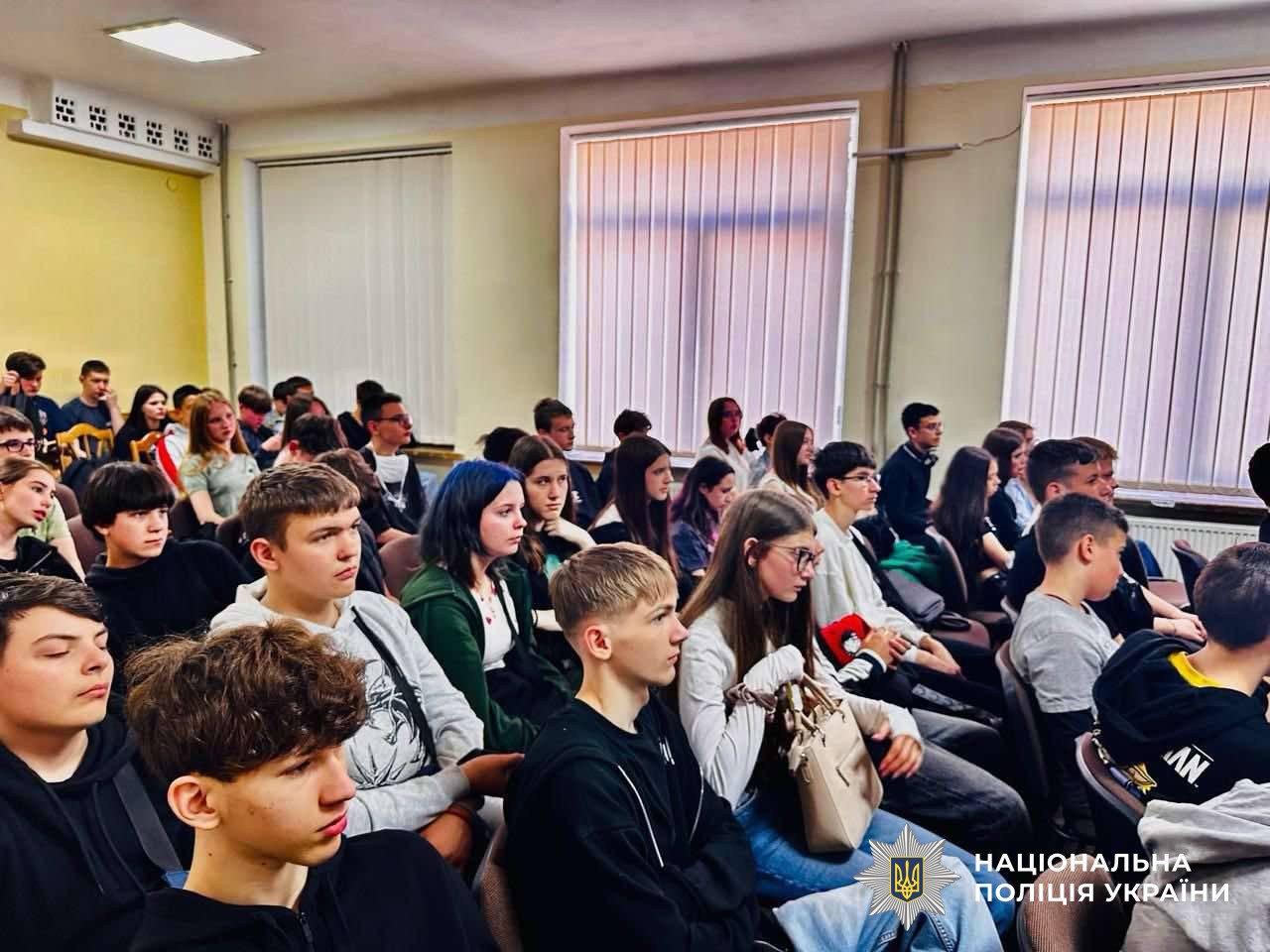 На початку зустрічі ювенальні поліцейські спільно з співробітниками головної інспекції поліції Івано-Франківщини розповіли ліцеїстам про те, як соціальні мережі, месенджери та ігрові платформи можуть становити небезпеку для, адже саме через них ворог налагоджує контакт. Вони застерегли дітей від пропозицій швидкого заробітку, що полягають у реалізації «жартів», доставці невідомих предметів, фотографуванні установ та організацій, підпалах різних об’єктів, вчиненні інших протиправних дій тощо.