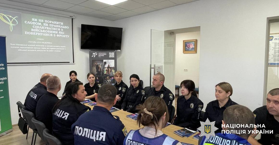Під час навчання правоохоронці ознайомилися з особливостями посттравматичного синдрому, принципами чутливого спілкування та підтримки військовослужбовців після повернення з фронту.