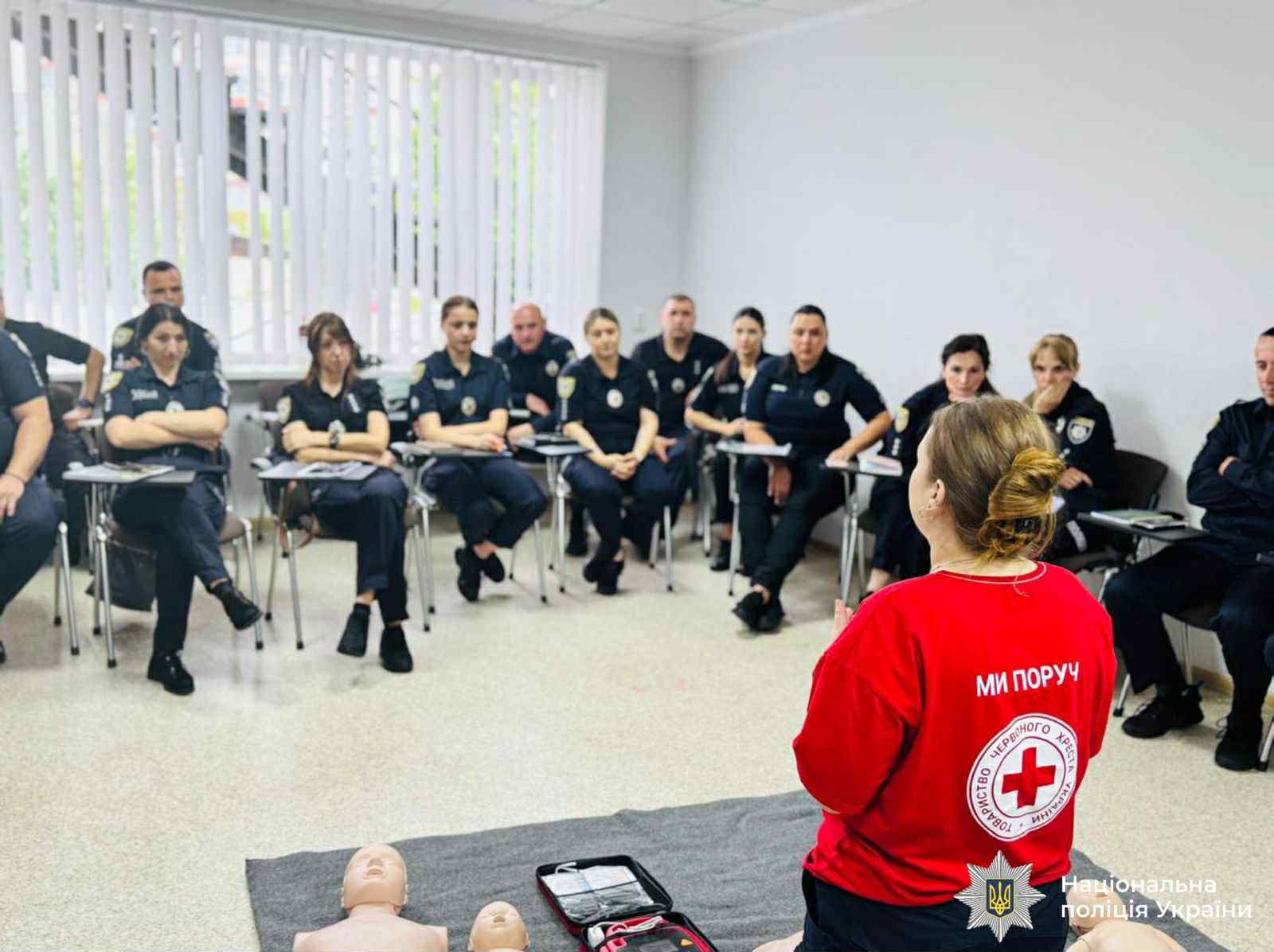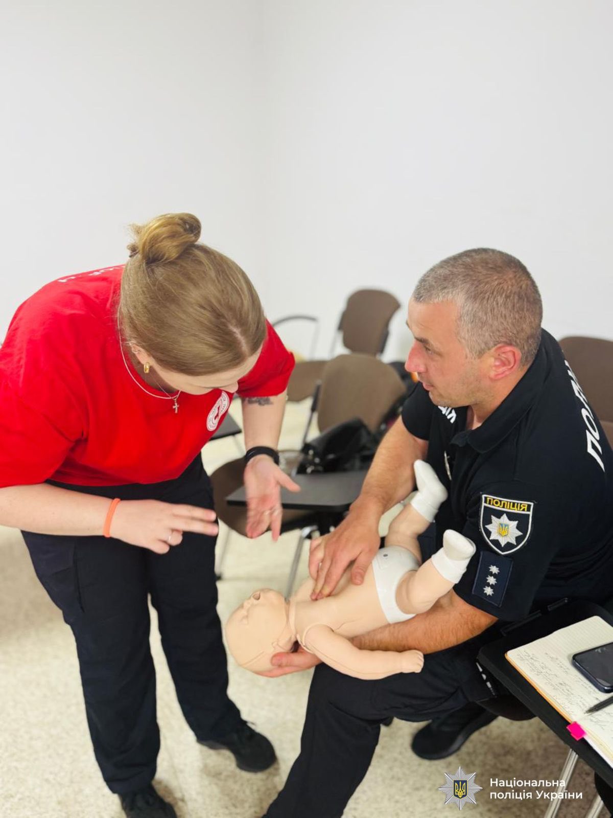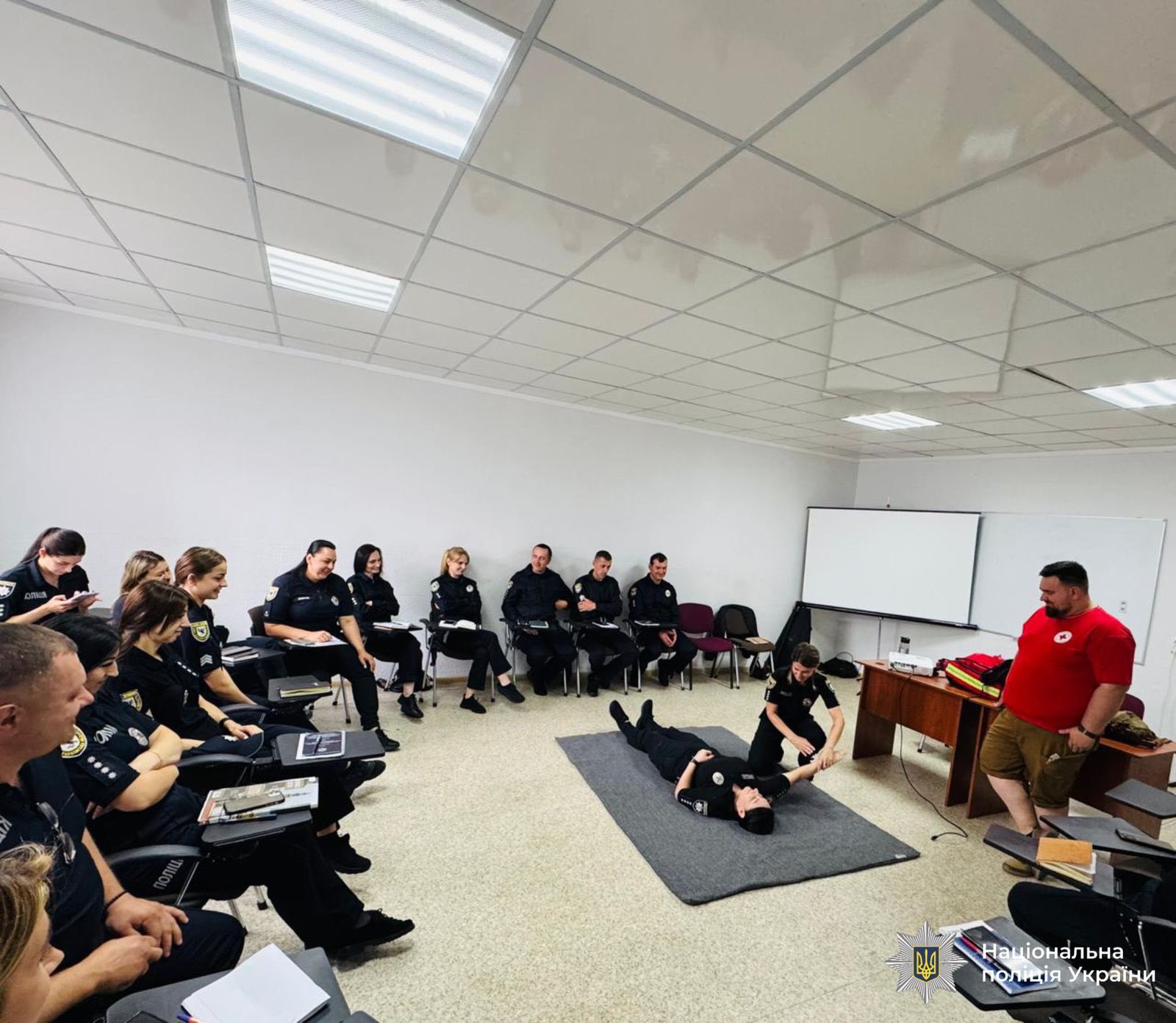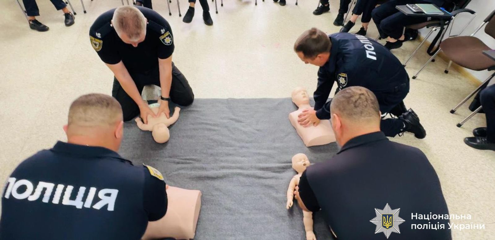 Під час заняття поліцейські вивчили способи та правила накладання турнікетів, пов'язок, тампонад, ознайомилися з серцево-легеневою реанімацією, методами зупинки різних видів кровотеч, наданням допомоги при проникаючих пораненнях, при опіках, нападах епілепсії, шоковому стані тощо.