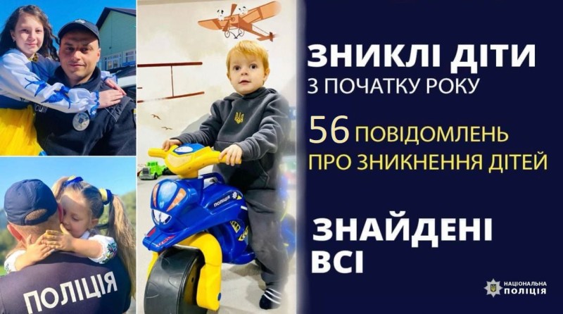 Від початку року до поліції Прикарпаття надійшло 56 звернень про зникнення 59 дітей. З них 32 - малолітні, тобто віком до 14 років. Усіх дітей розшукано упродовж доби.