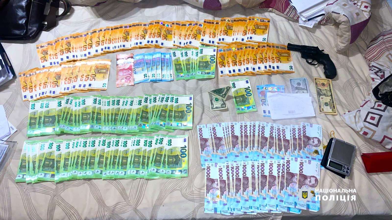 За підтримки спецпризначенців КОРД, РПОП та ТОР проведено 30 обшуків за місцями проживання фігурантів, їхніх транспортних засобів та гаражів. Вилучено наркотичну марихуану, "амфетаміну", зіп-пакети для фасування, набої до вогнепальної зброї, 500 г вибухонебезпечних речовин, понад 26 тисяч євро, 5 тисяч доларів США, а також елітні автомобілі - "Audi S7", "Tesla Model Y", "BMW X6", "Mercedes-Benz B-Class", більше десятка смартфонів та 25 банківських карток.