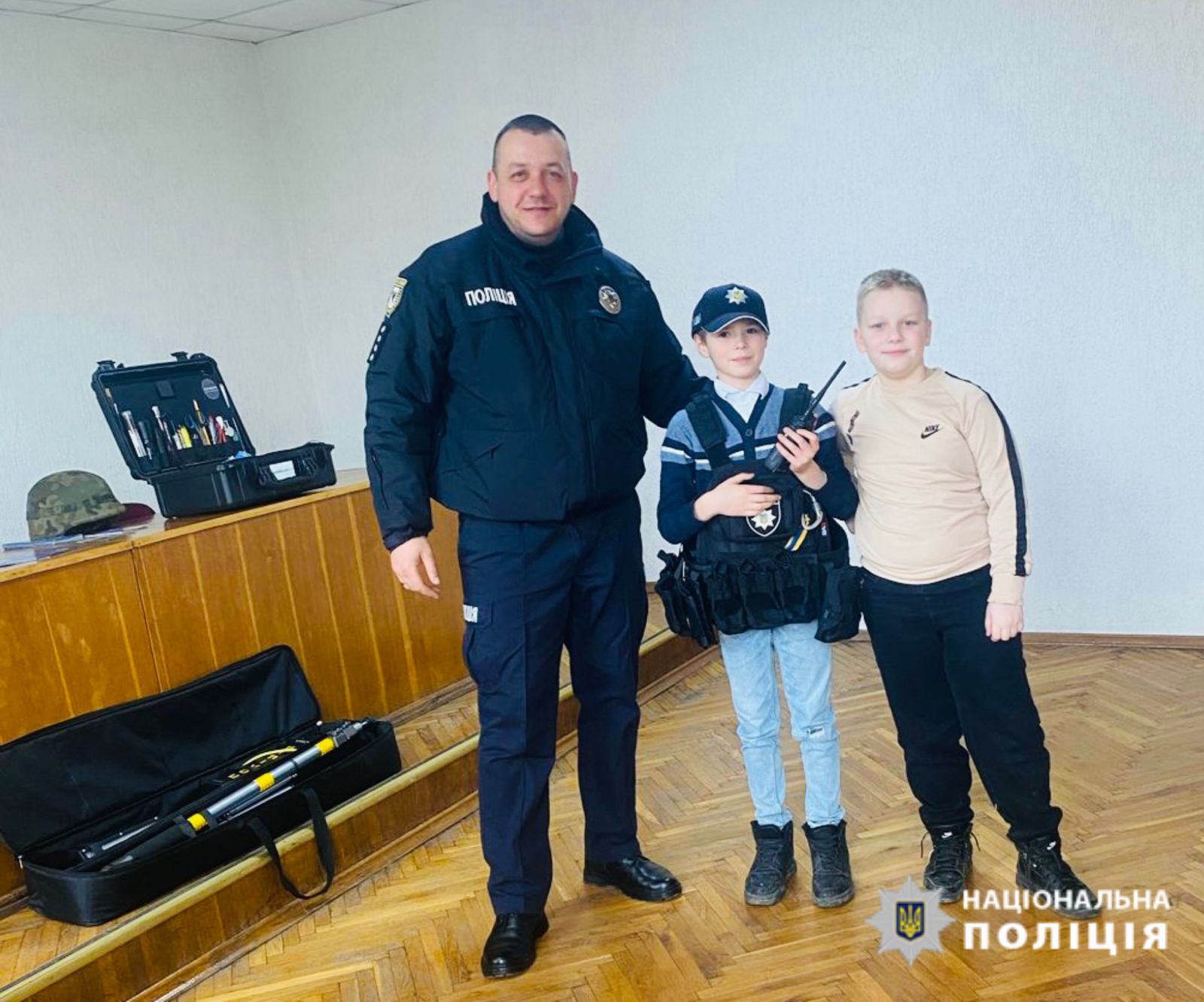 Діти мали можливість приміряти бронежилети та шоломи, ознайомитись з роботою нагрудної камери.