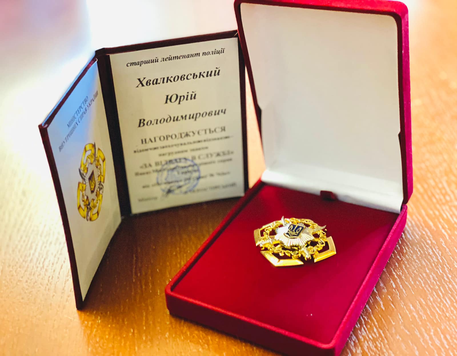 Медаль МВС України «За відвагу в службі» отримав старший лейтенант поліції Юрій Хвалковський.