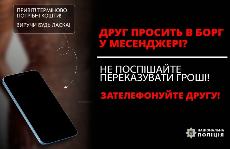 «Привіт, позич гроші…» - поліція Прикарпаття розповідає про шахрайську схему зі зламом акаунтів у месенджерах