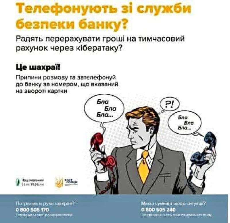 - якщо вас просять перевести куди-небудь гроші для того, щоб активувати або розблокувати картку, не довіряйте- це шахраї;
