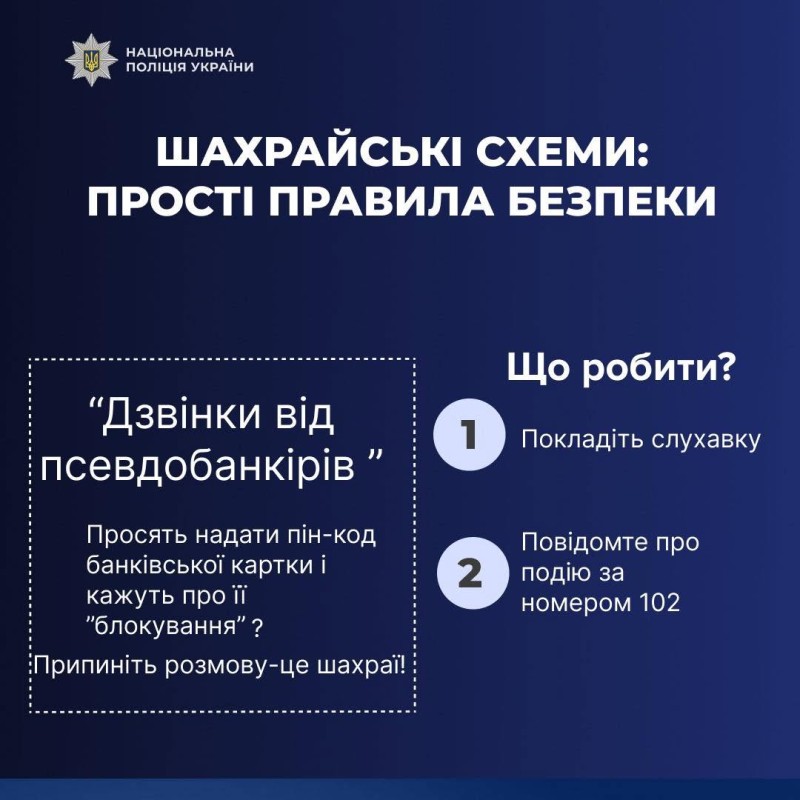 Поліцейські вкотре радять громадянам бути обережними та не довіряти незнайомцям. Не варто робити будь-які операції з карткою у телефонному режимі, краще особисто звернутись до банківської установи.