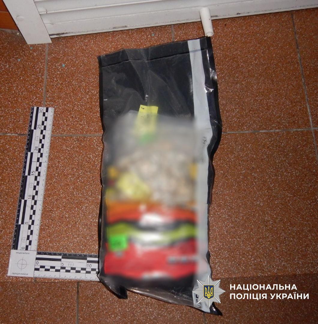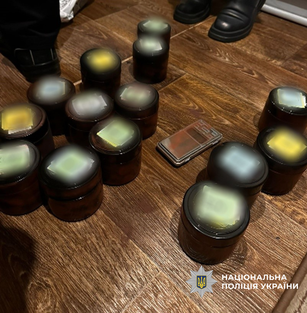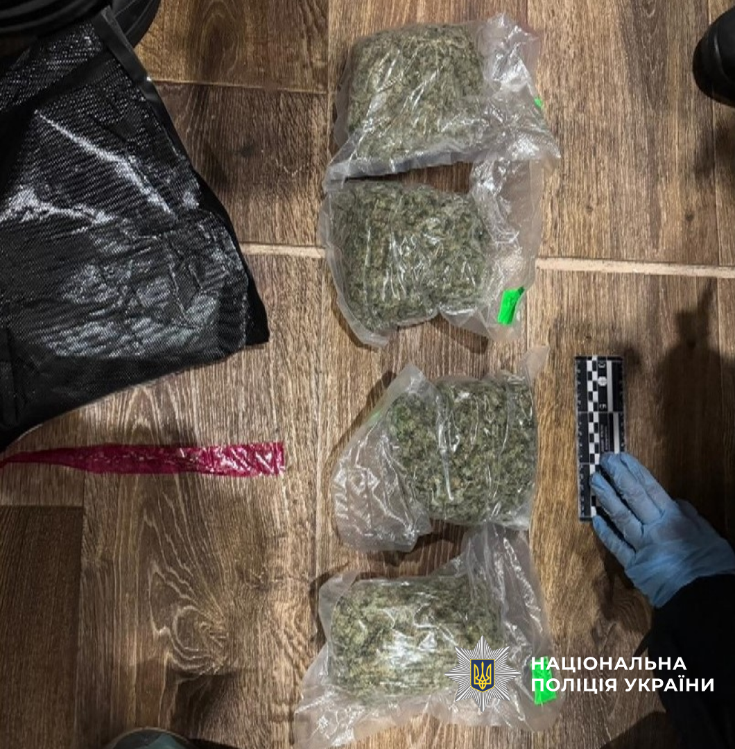 Під час обшуку за місцем проживання чоловіка поліцейські вилучили ще близько кілограма подрібненої висушеної речовини — канабіс, обладнання для фасування, ваги, пристрої для вживання наркотиків, мобільні телефони та понад 300 тисяч гривень, отриманих від збуту заборонених речовин.