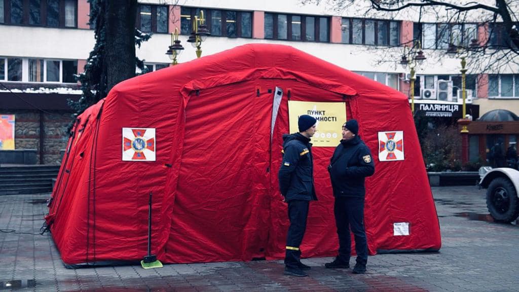 Прикарпатті розгорнули «Пункти незламності». Розгорнуті намети знаходяться в місті Івано-Франківськ: на Вічевому майдані та по вулиці Франка, 6. Також по одному пункту рятувальники розгорнули в центральних частинах таких міст як: Коломия, Калуш, Надвірна, Косів, Яремче та в селищі Верховина. З картою "Пунктів незламності" можна ознайомитися тут https://nezlamnist.gov.ua/