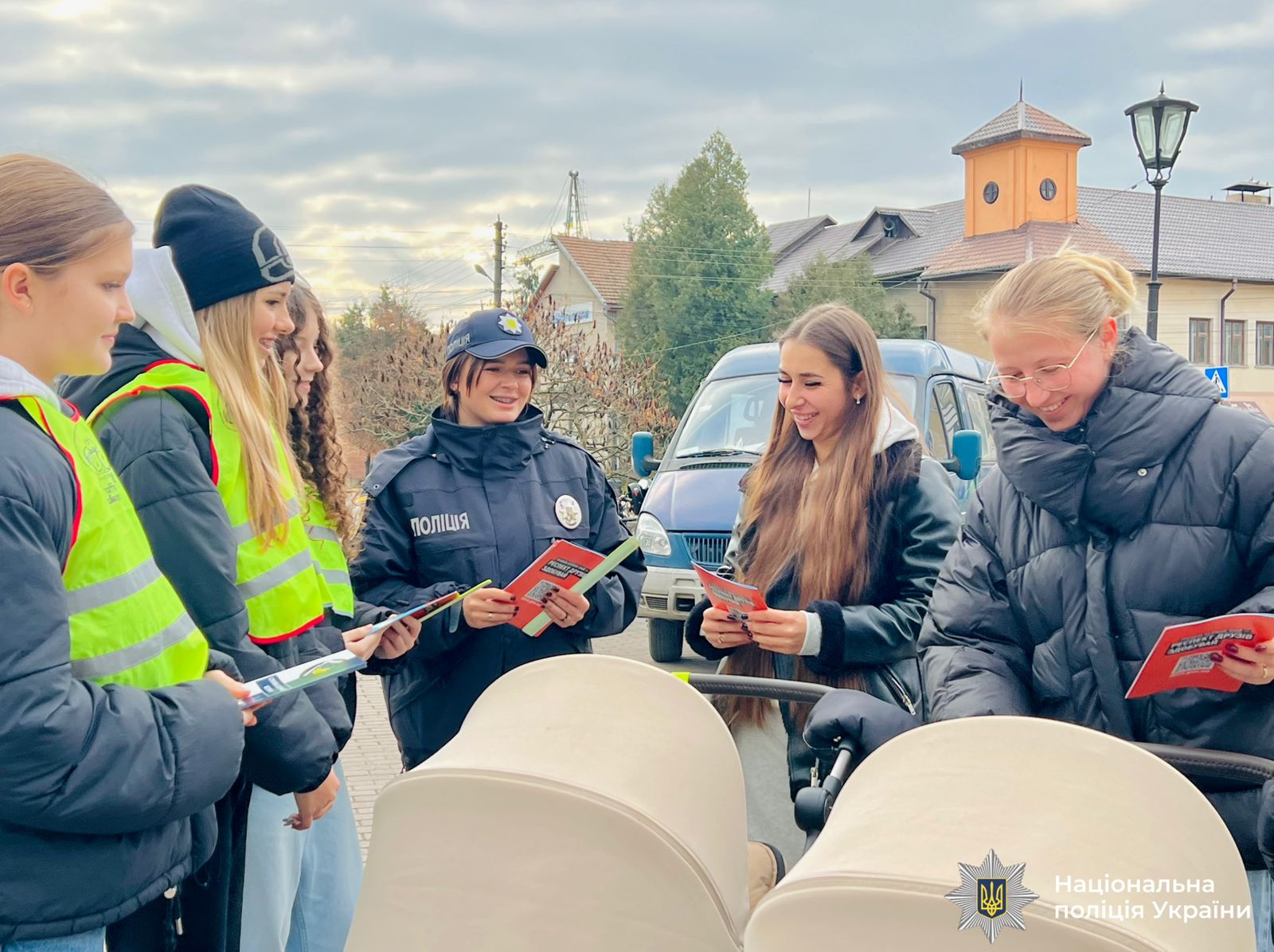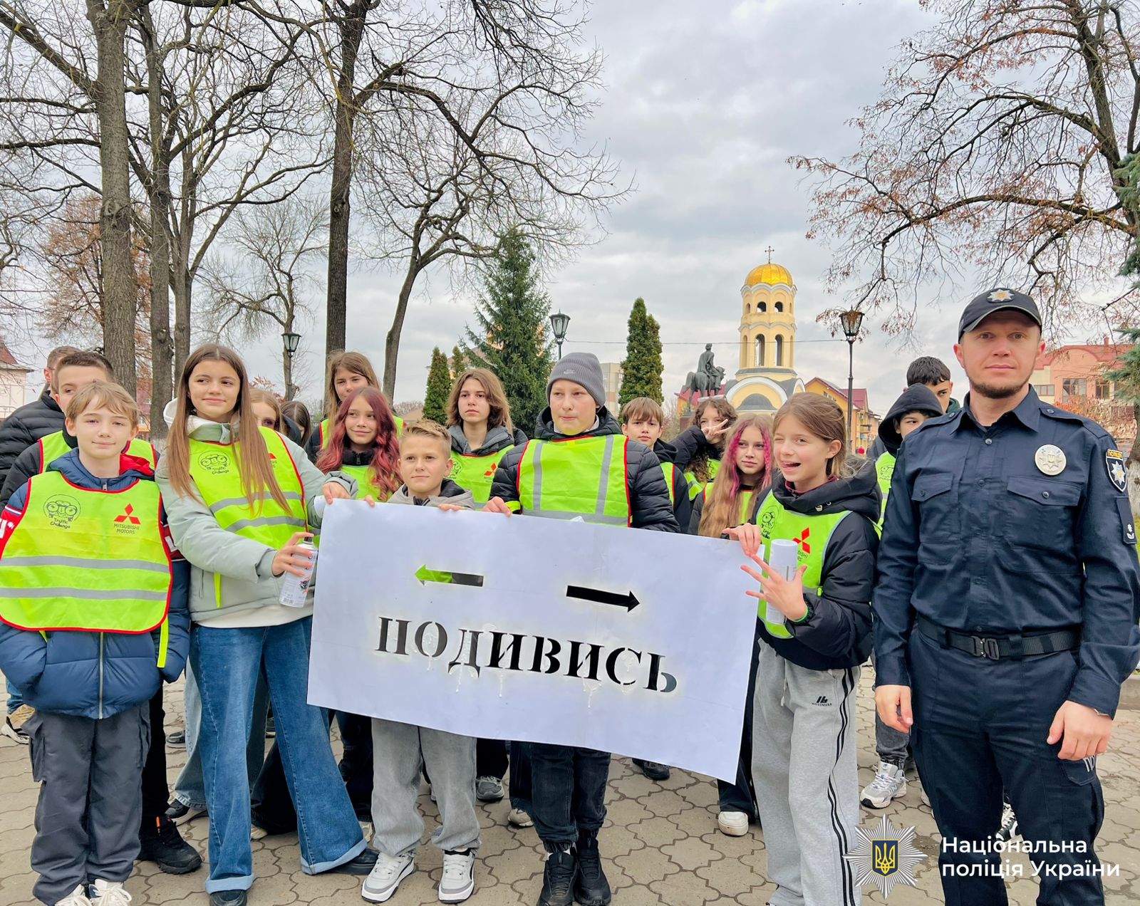 «Разом за безпеку на дорозі»: прикарпатські поліцейські спільно з ліцеїстами провели вуличну акцію з безпеки дорожнього руху