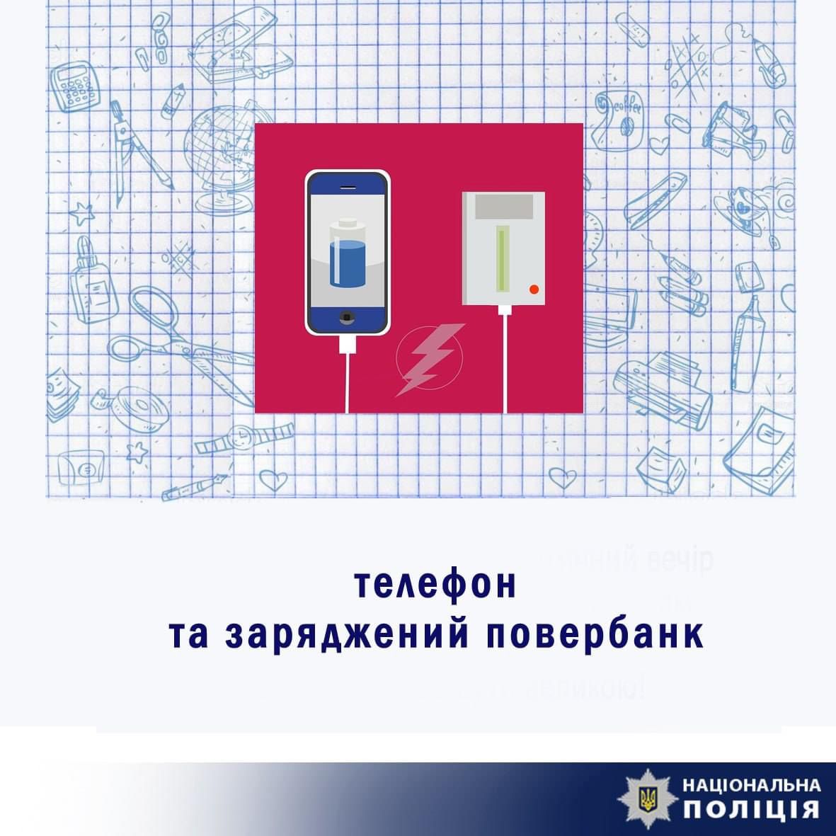 - телефон (за можливості) + зарядний пристрій + павербанк;