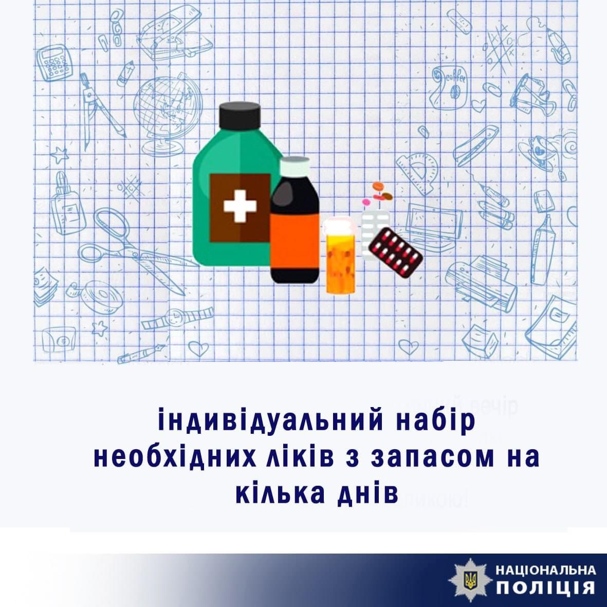 - індивідуальний набір необхідних ліків (запас на кілька днів);