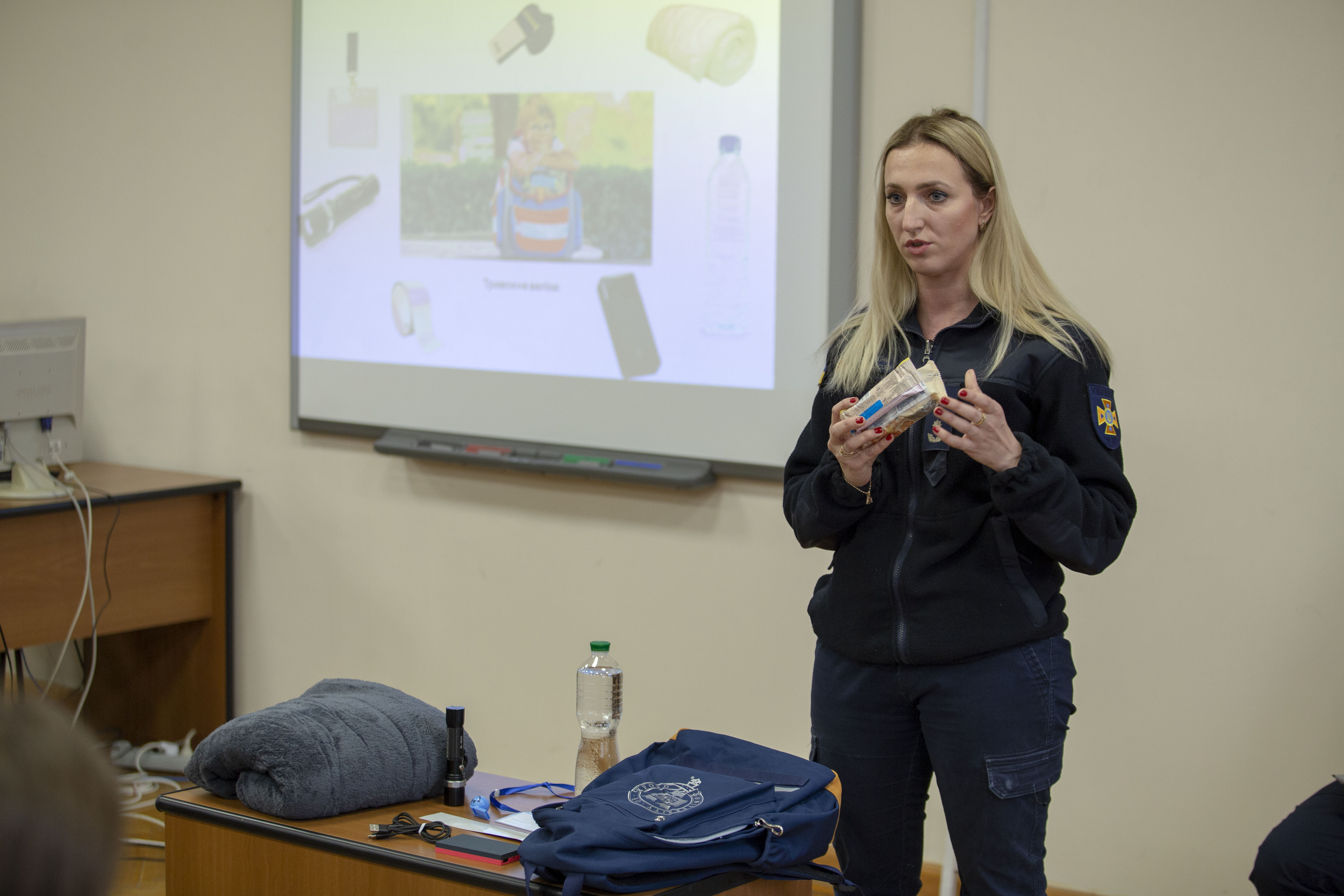 Водночас головний фахівець відділу зв’язків із засобами масової інформації та роботи з громадськістю ДСНС України Олександр Макушенко розповів дітям, що потрібно покласти у свою «тривожну» валізу: