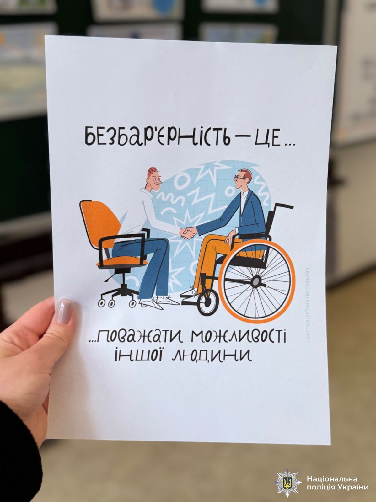 Формування поваги, толерантності та емпатії з дитинства — один із важливих напрямів роботи поліцейських у школах. Саме тому інспектори служби освітньої безпеки проводять для дітей профілактичні та пізнавальні заходи, які допомагають виховувати свідоме, доброзичливе та безбар’єрне суспільство.