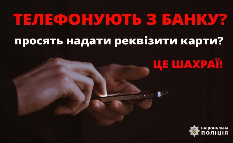 -співробітники банку ніколи не вимагають назвати останні три цифри на зворотному боці картки (CVV-код), пароль від карти, термін дії, одноразовий пароль, код операції, який приходить на телефон;