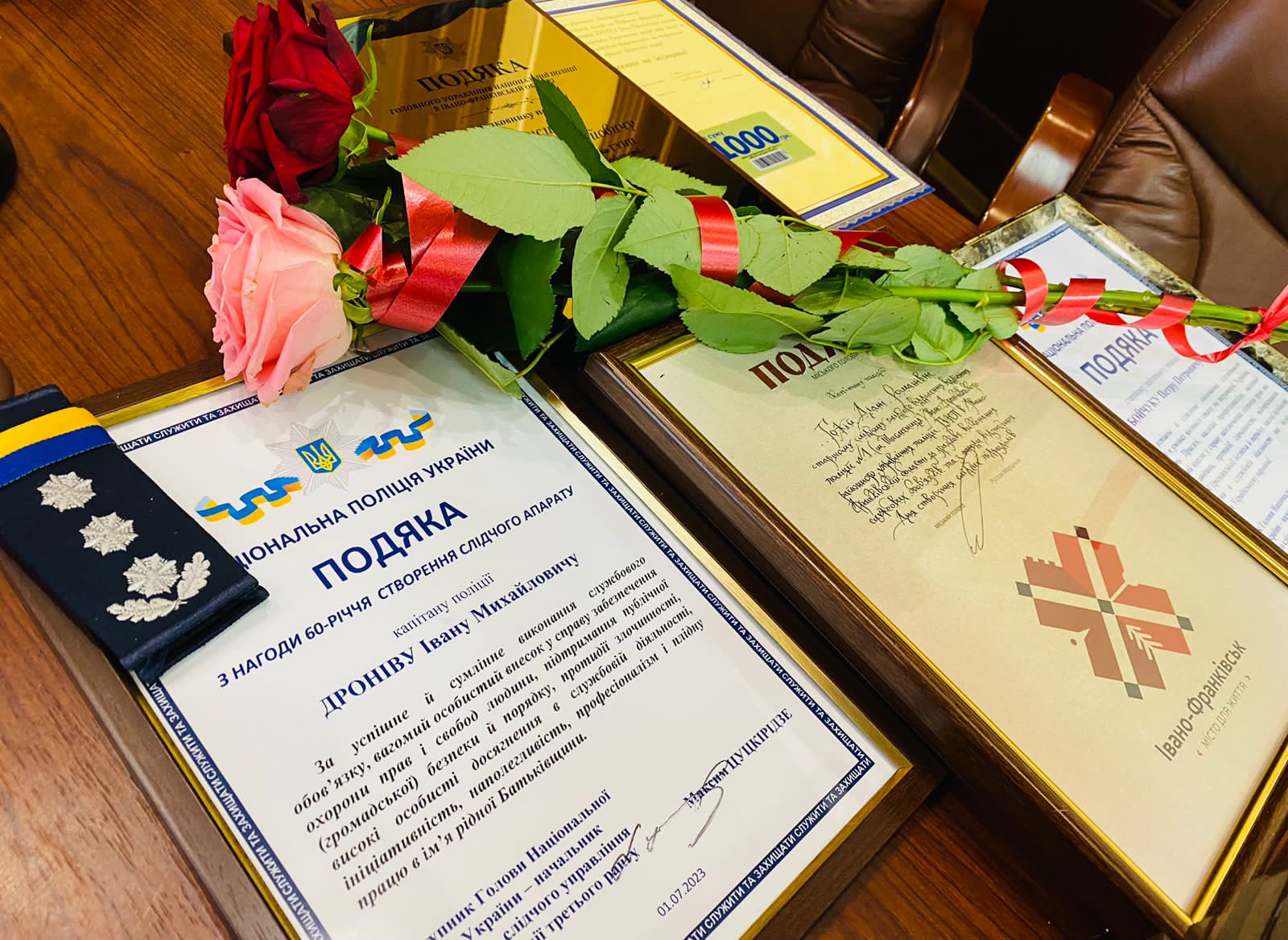 Івано-Франківській області Сергій Безпалько та керівники Івано-Франківської обласної прокуратури. Керівник обласної поліції вручив кращим слідчим відомчі подяки, а також грамоти від Івано-Франківської облдержадміністрації та Івано-Франківської міської ради. Чергове спеціальне звання, а саме полковника поліції, вручили заступнику начальника Слідчого управління Андрію Ужелі.