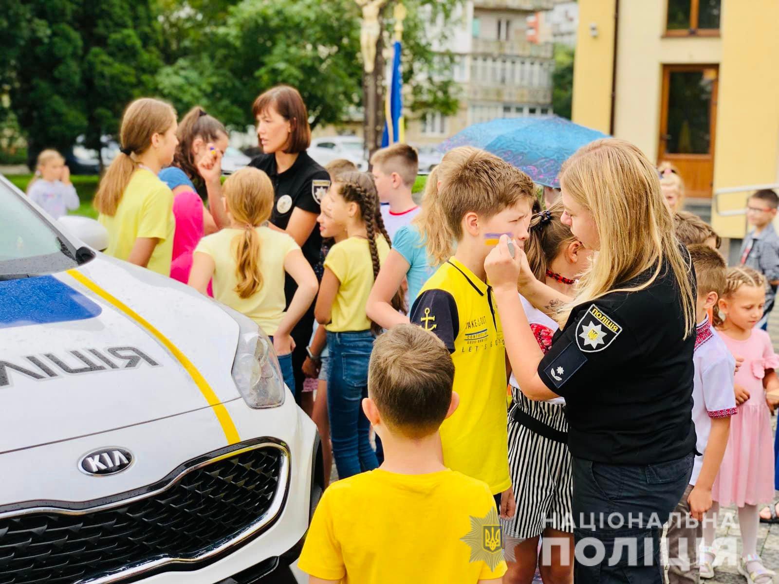 А з нагоди свята дітвора разом з інспекторами розфарбували на обличчі синьо-жовті прапорці.