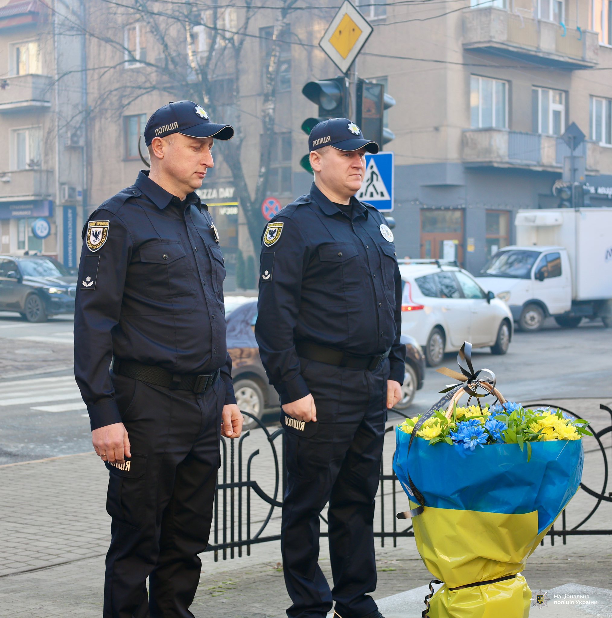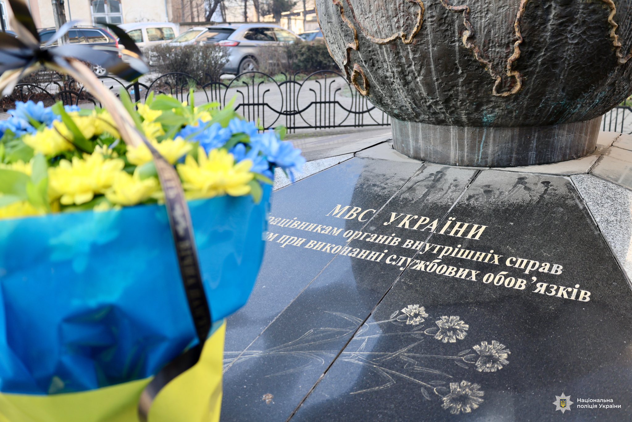 Присутні вшанували хвилиною мовчання пам’ять колег, які загинули під час виконання службових обов’язків, та поклали квіти до пам’ятника загиблим правоохоронцям.