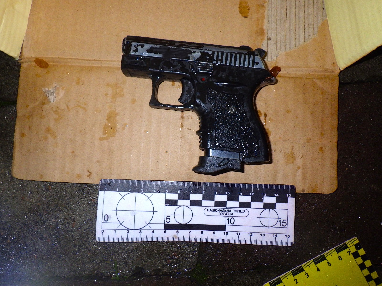 Учасників бійки на місці події не було. Поліцейські виявили та вилучили чотири предмети, схожі на гільзи, предмет, схожий на пістолет. Речові докази поліцейські направили на експертне дослідження.