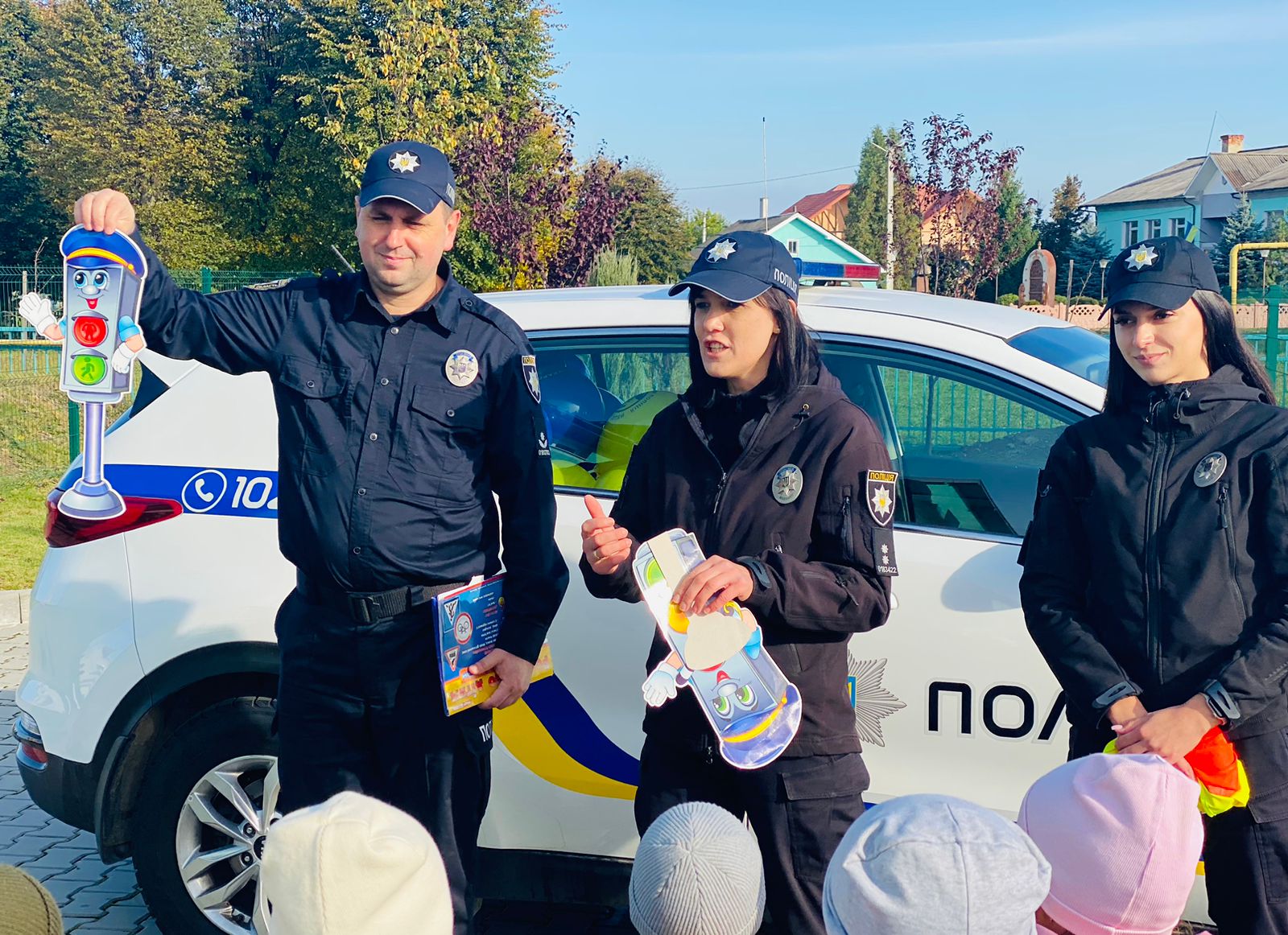 Спершу діткам розповіли про основні дорожні знаки та правила дорожнього руху. А ще пояснили, як правильно та безпечно переходити дорогу. Наголосили й на тому, що пішоходи в темну пору доби повинні носити світлоповертаючий одяг, щоби керманичі могли їх завчасно помітити.