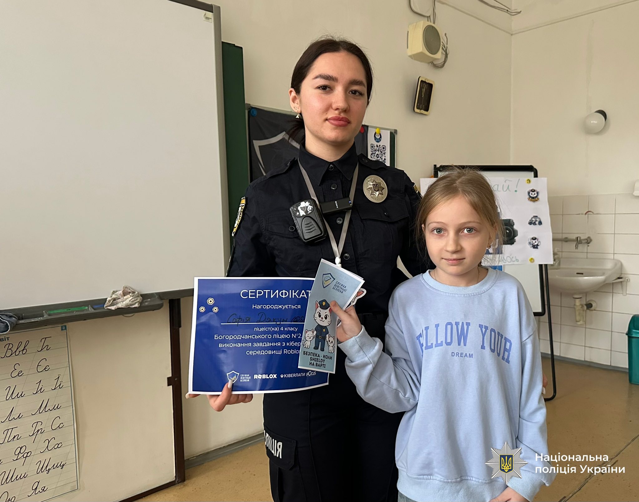 Поліцейські служби освітньої безпеки спільно з учнівським самоврядуванням Богородчанського ліцею № 2 розробили інтерактивну гру «Кіберлапка» на базі безкоштовної онлайн-платформи «Roblox». Напередодні її презентували молодшим ліцеїстам. Основна мета гри — навчати дітей кібергігієні у доступний, захопливий і водночас сучасний спосіб.