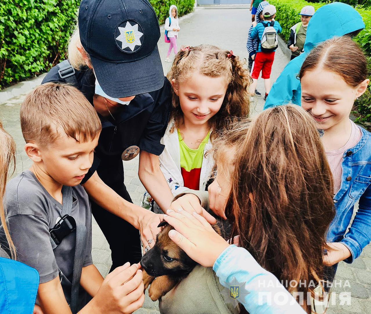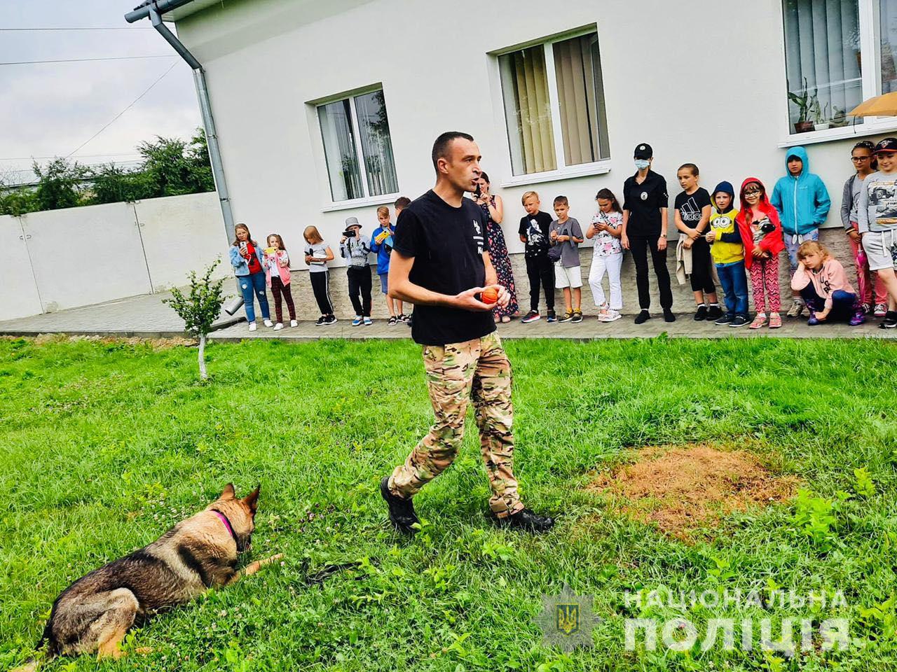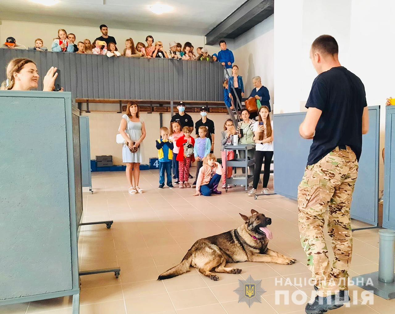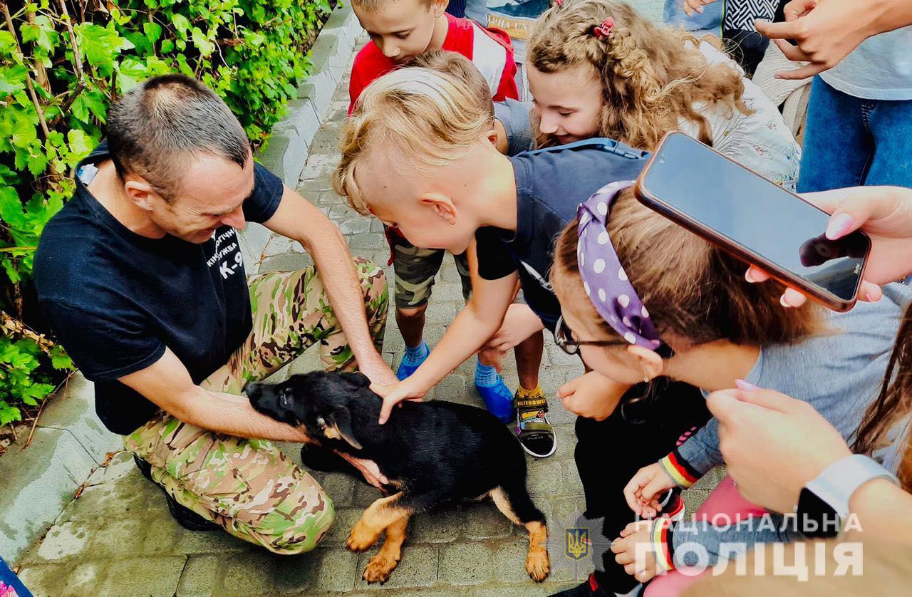 Крім того, на занятті юним гостям продемонстрували, як службові собаки здійснюють пошук наркотичних речовин та зброї, затримують умовного правопорушника.