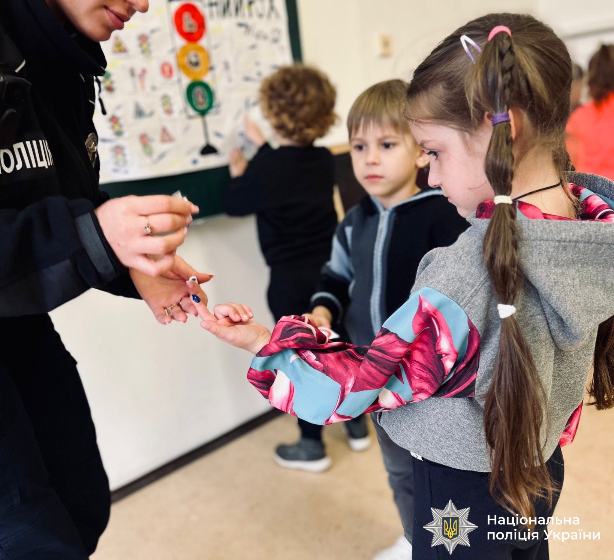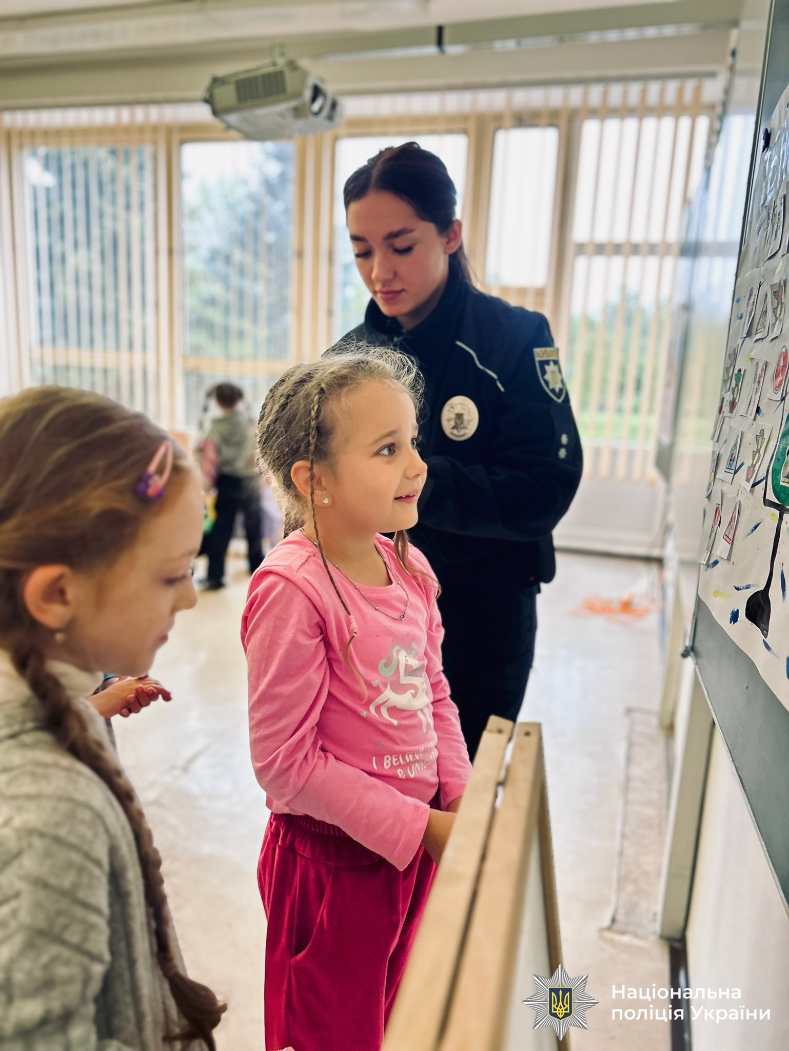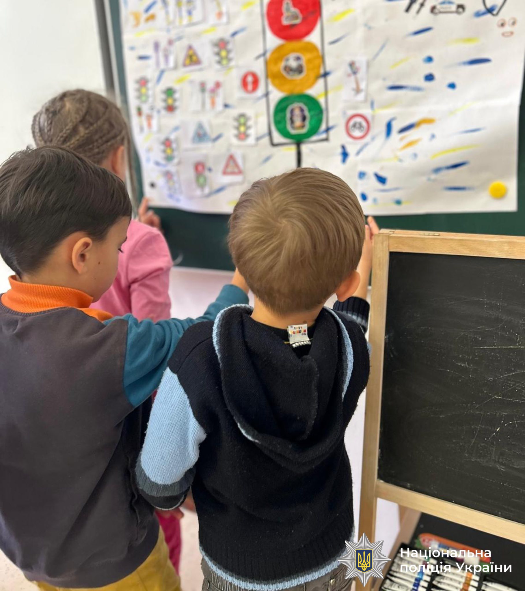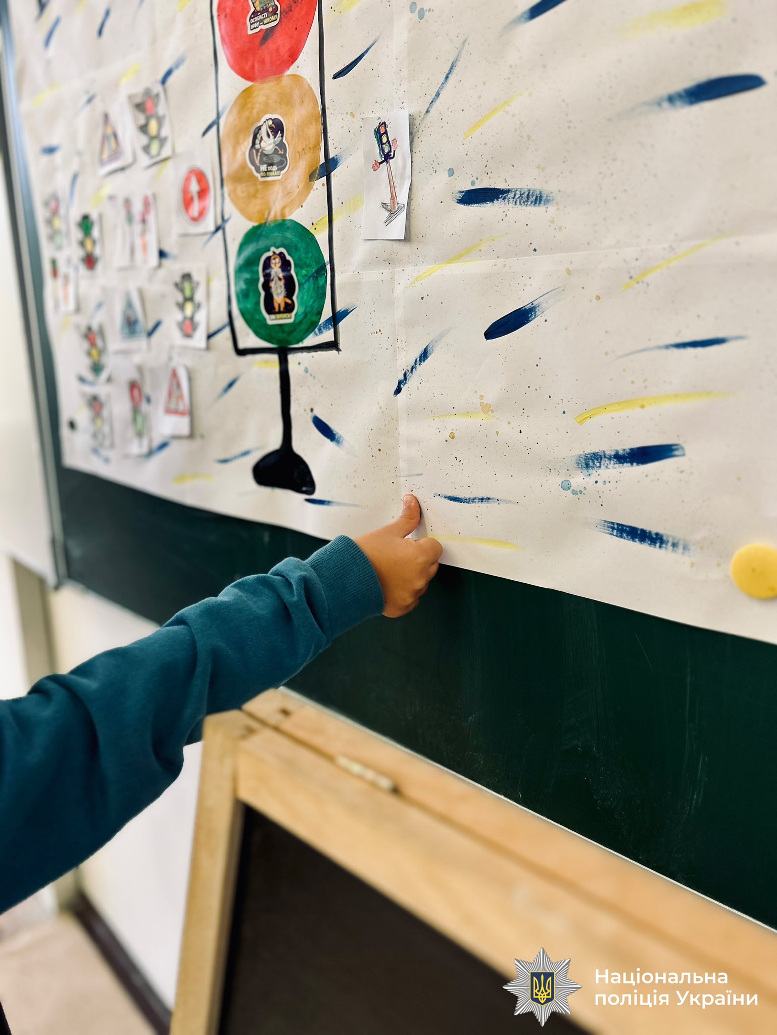 Поліцейська у цікавій формі пояснила дітям, як правильно переходити дорогу, що означають сигнали світлофора та чому так важливо бути уважними поблизу проїжджої частини. Особливу увагу інспекторка приділила темі носіння світловідбивних елементів — адже вони допомагають водіям помітити пішоходів у темну пору доби.