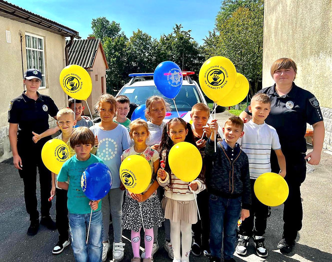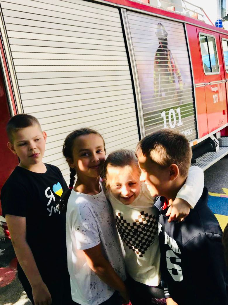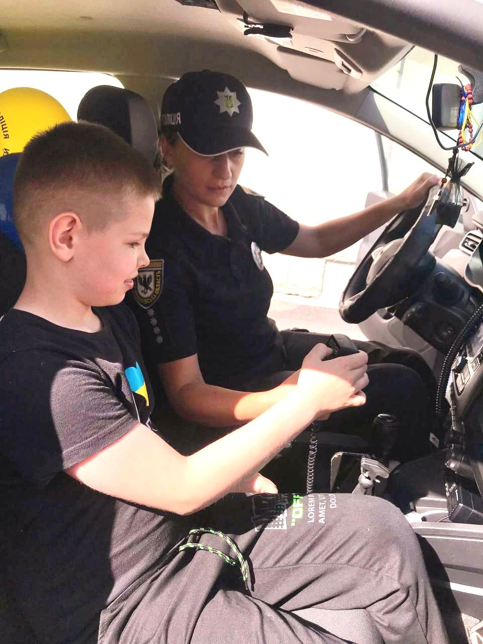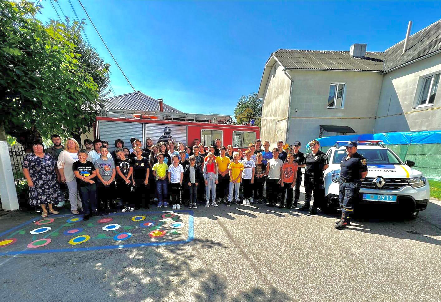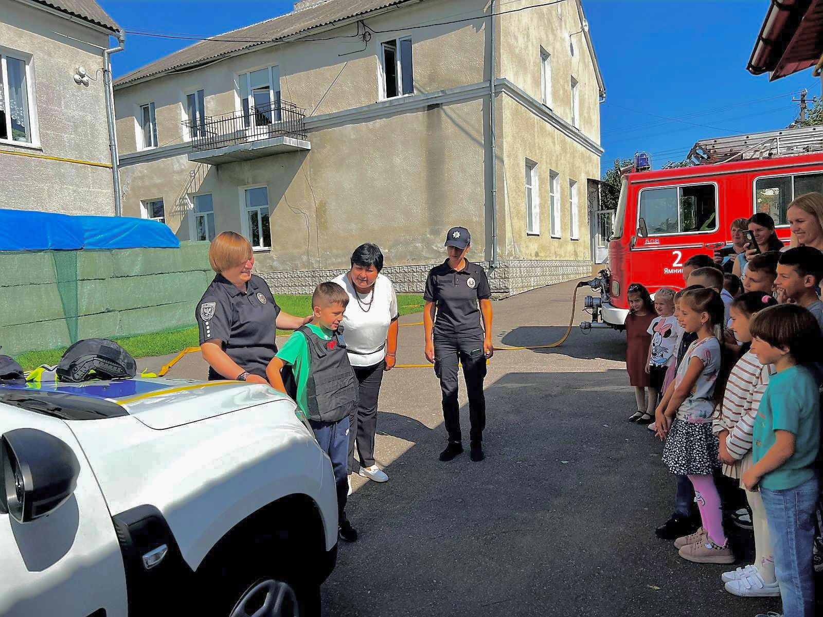 На подвір’ї ліцею дітей уже очікувала поліцейська та пожежна машини. Діткам показали, як працює спецтранспорт і навіть покатали на ньому.
