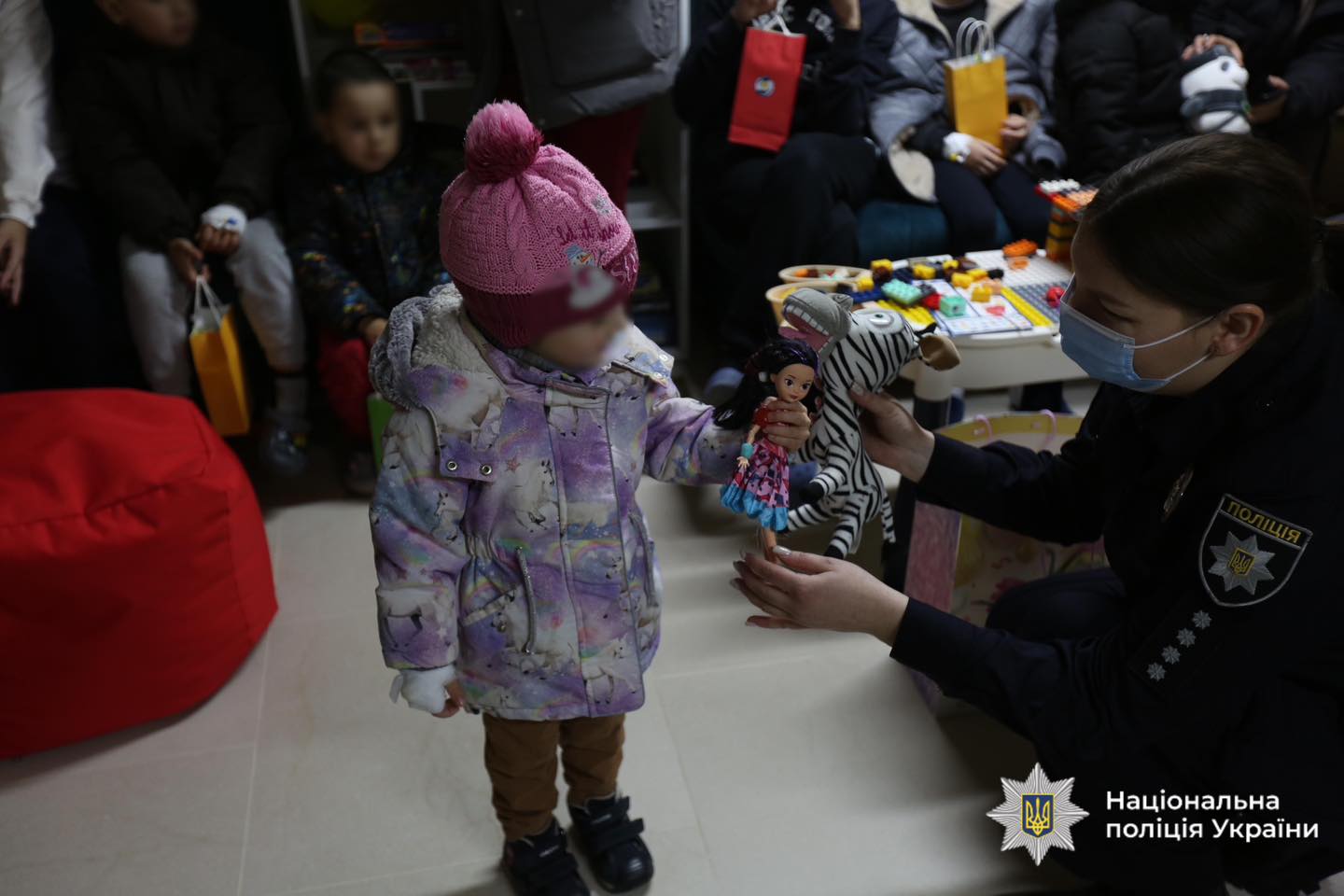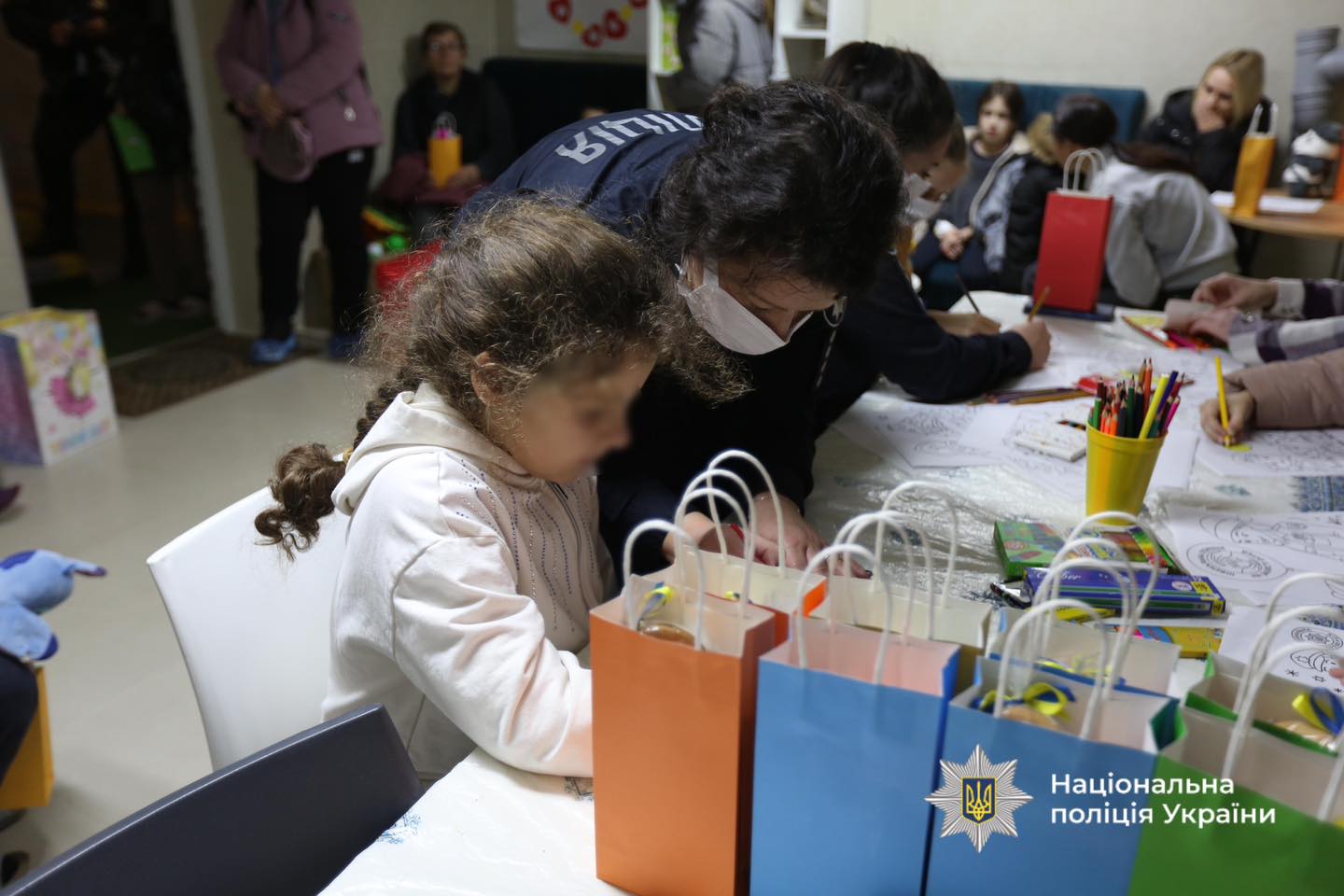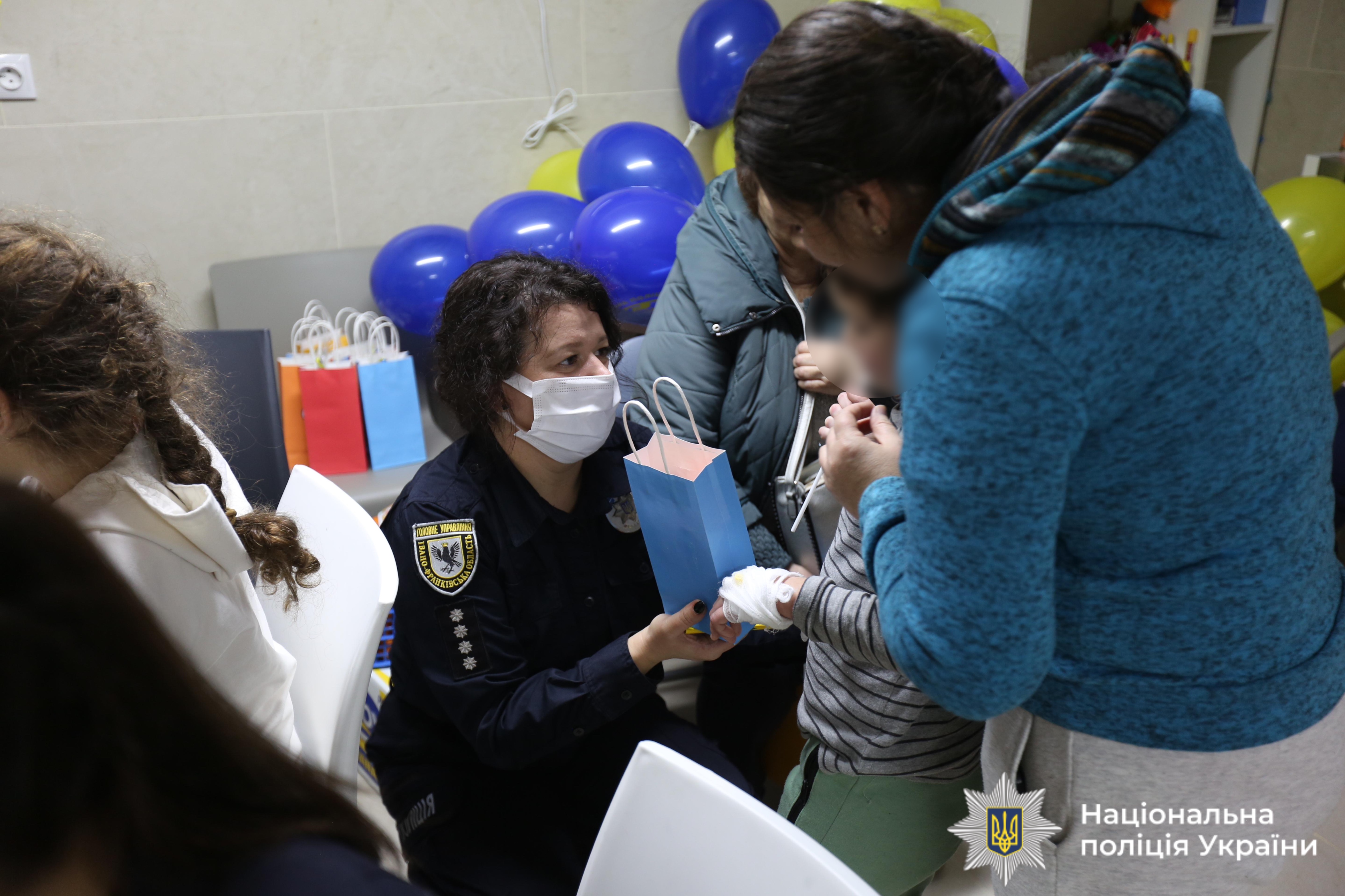 Поліцейські привітали зі святом діток різного віку — від малюків до підлітків. І для кожного вони підготували святкові подарунки: набори солодощів, фрукти, тематичні розмальовки, іграшки та повітряні кульки. Дітлахи щиро раділи сюрпризам, із захопленням спілкувалися з правоохоронцями.