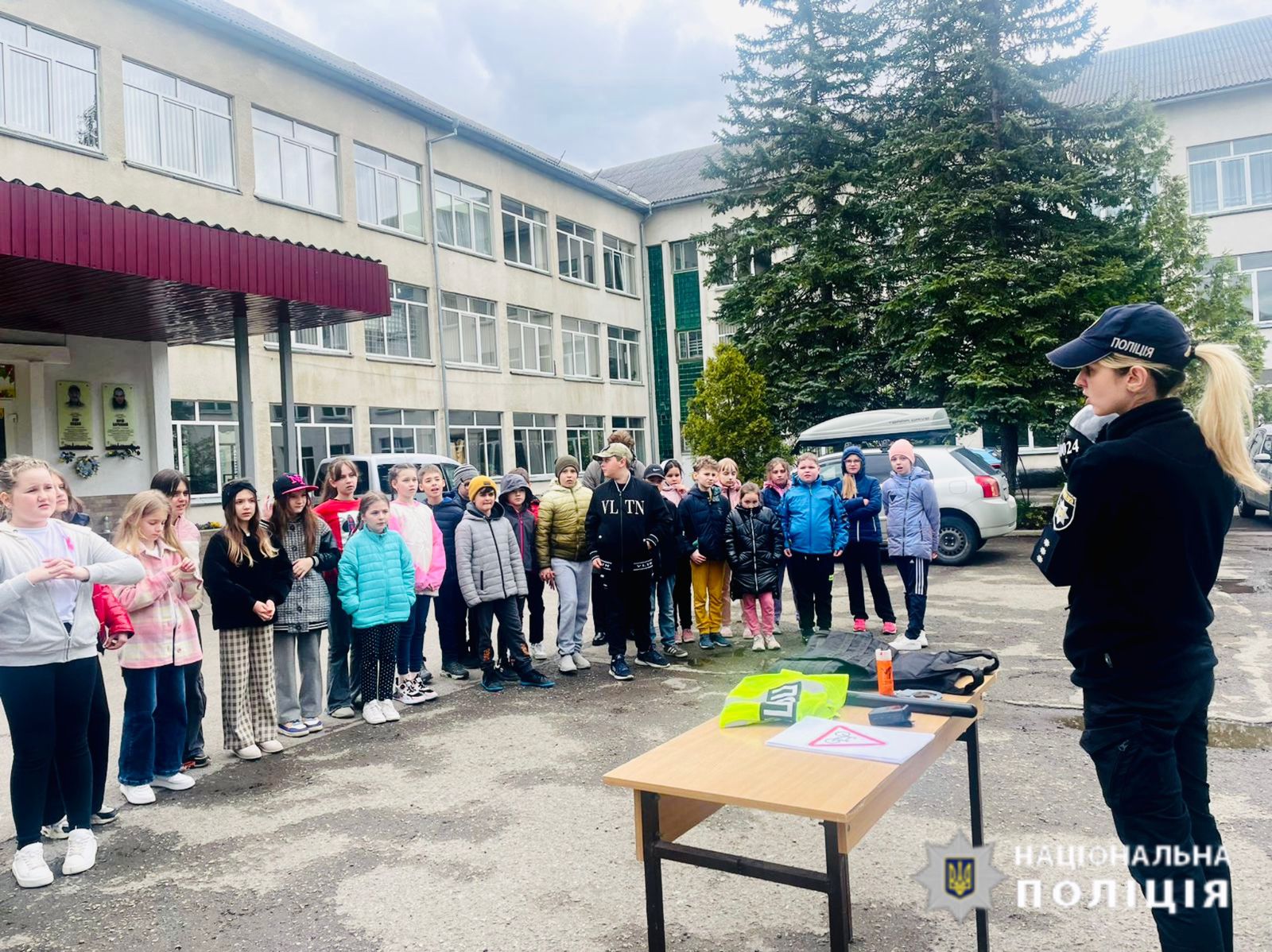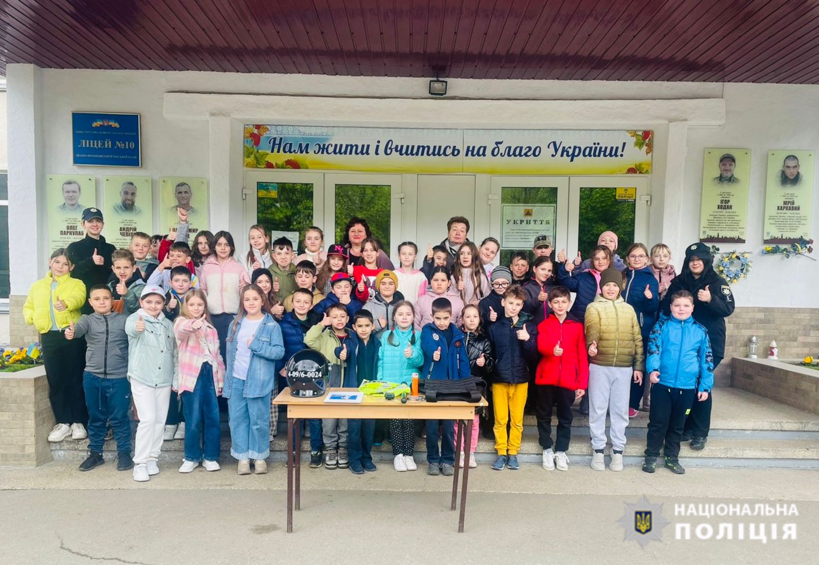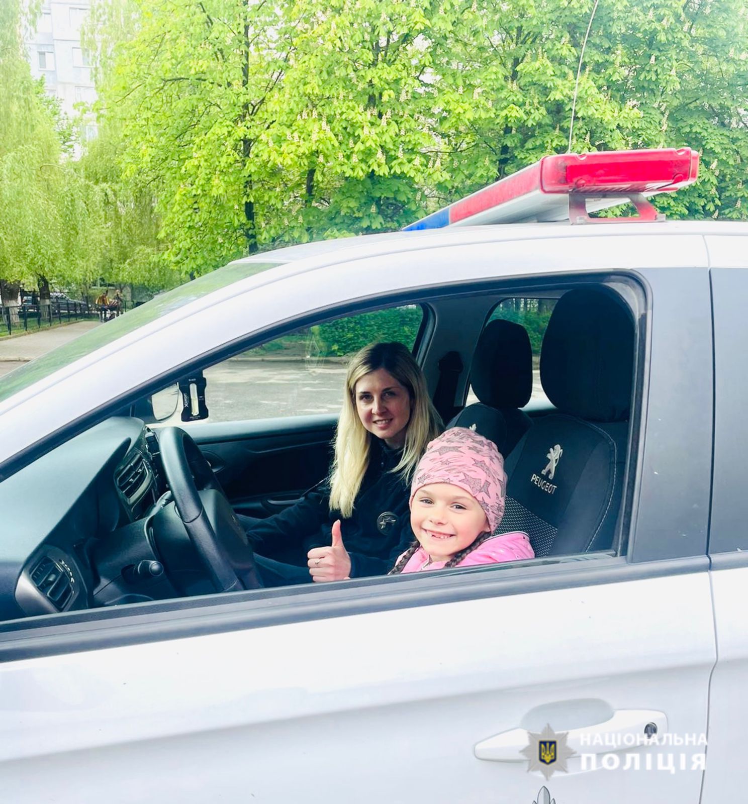 Поліцейські познайомили дітей зі своєю роботою, розповіли про завдання, які виконують правоохоронці під час несення служби, якими засобами обладнанні спецавтомобілі та інше.