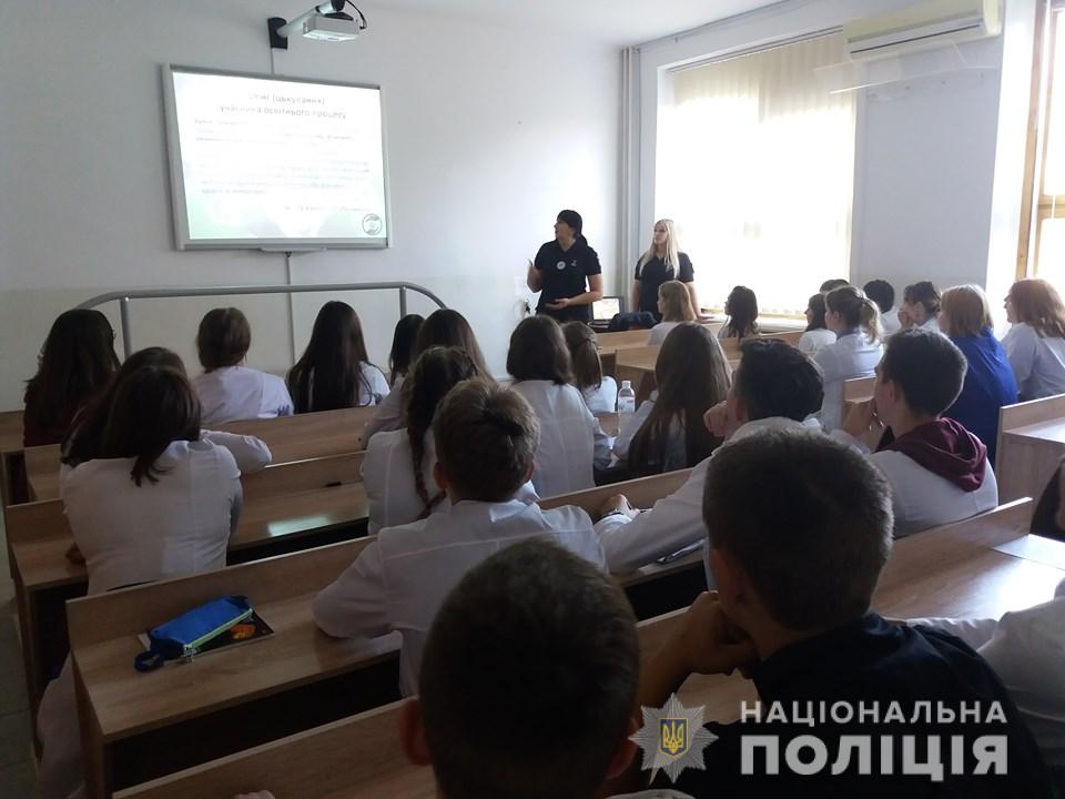 Спілкуючись з майбутніми медпрацівниками, начальник відділу ювенальної превенції УПД ГУНП в області Алла Бойчук наголосила, що працівники поліції передусім ставлять собі за мету не покарати молодих людей, котрі з певних причин оступилися, а застерегти від правопорушень, спонукати молодь до здорового способу життя та навчити, як захиститись від злочинних зазіхань.