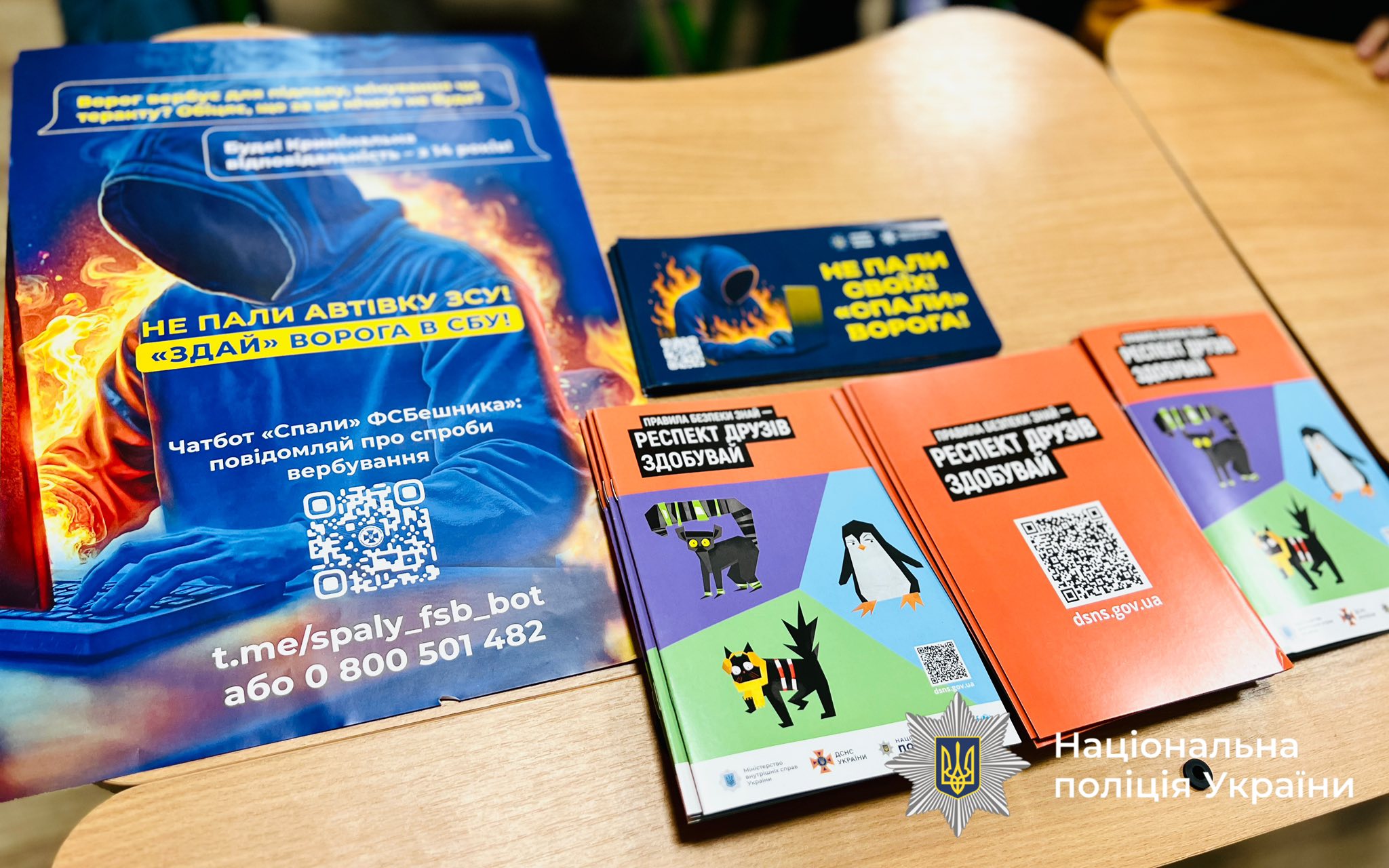 Окрему увагу приділили онлайн-безпеці. Підлітки дізналися, як діють вербувальники у соцмережах, чому не варто довіряти незнайомцям в інтернеті та яку відповідальність несуть неповнолітні за участь у протиправних діях. Під час зустрічі вони переглянули тематичний відеоролик і отримали пізнавальні буклети з порадами щодо кібербезпеки.