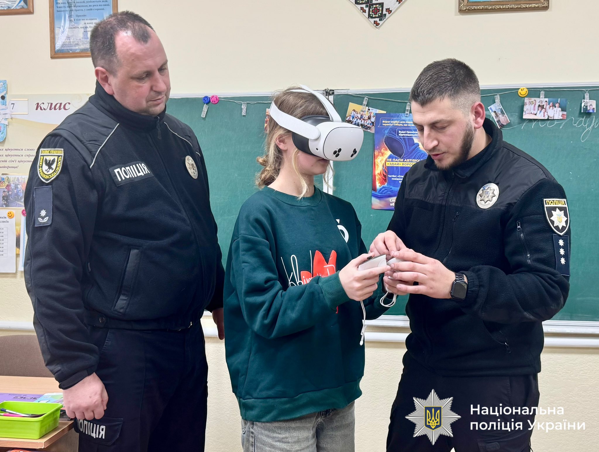 За допомогою окулярів віртуальної реальності відпрацьовували правила безпеки та навчалися правильно діяти в різних ситуаціях: ювенальні поліцейські провели урок для підлітків