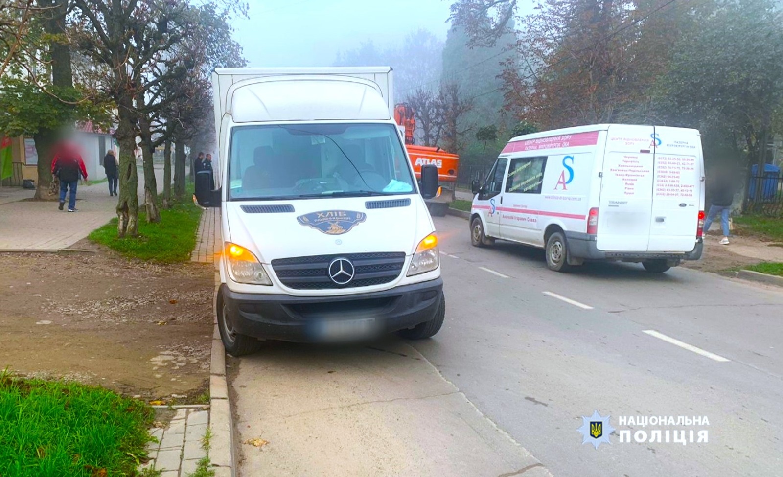 Перша аварія трапилась 9 жовтня о 08:20 у Коломиї. Відомо, що 22-річний керманич «Mercedes-Benz Sprinter», розпочавши рух, здійснив наїзд на жінку. Остання у момент наїзду перебувала спереду транспортного засобу.