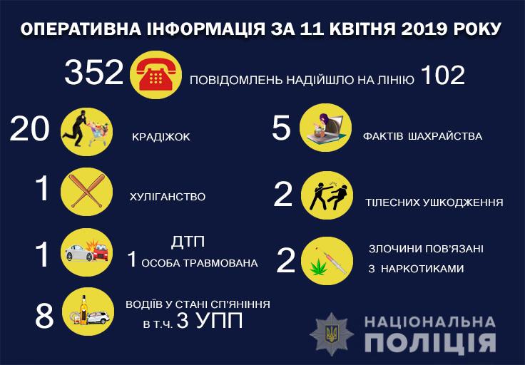 Злочини і нетверезі водії: оперативна інформація за 11 квітня