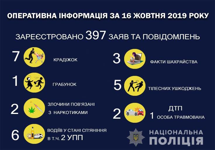 Злочини і нетверезі водії: оперативна інформація за 16 жовтня