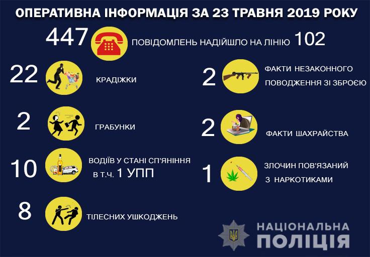 Злочини і нетверезі водії: оперативна інформація за 23 травня