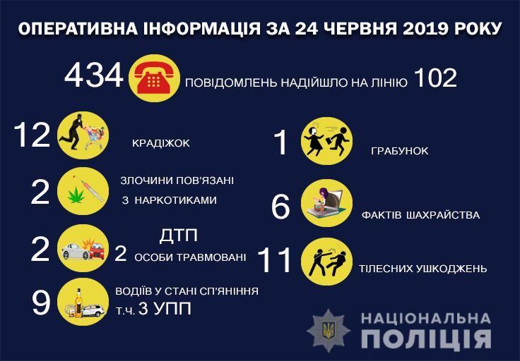 Злочини і нетверезі водії: оперативна інформація за 24 червня